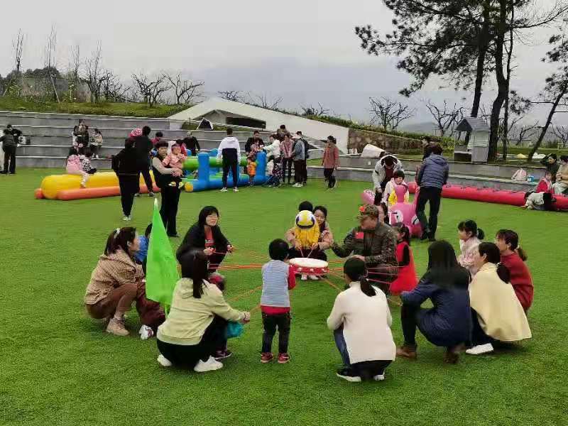 带娃的老师们也没闲着。“萌娃女神队”在园区中心操场上大声喊出了口号,唱起了队歌,玩起了“击鼓颠球”“接力传球”“快乐两块五”等游戏,加油声、欢呼声,此起彼伏。
