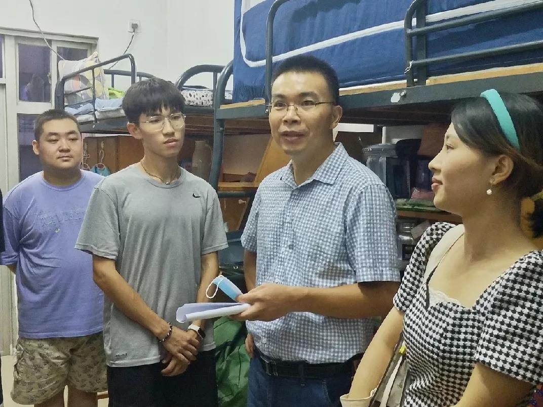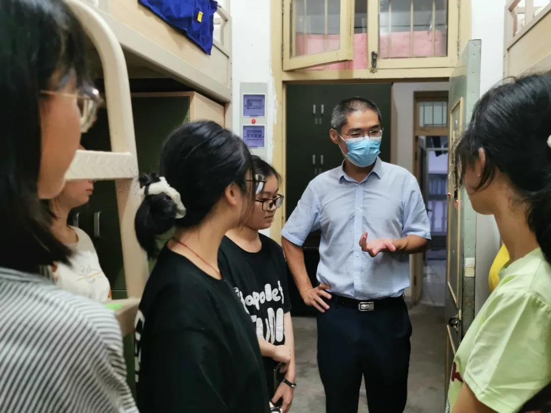 9月11日晚18:00,副校长张根福,校保卫处处长尹浩冰,校本科教学部副主任徐展斌一行到杏园8栋看望我院2021级新生。学院党委书记郑文哲,党委副书记徐颖,党委副书记、纪委书记方海明,党委委员、副院长何曙荣,党委委员、副院长李文博,党委委员郑小碧,团委书记、学工办主任孙龙,全体辅导员及各位新生学长学姐们到新生公寓走访新生,了解新生们的返校详情,为同学们送去温暖和关怀。