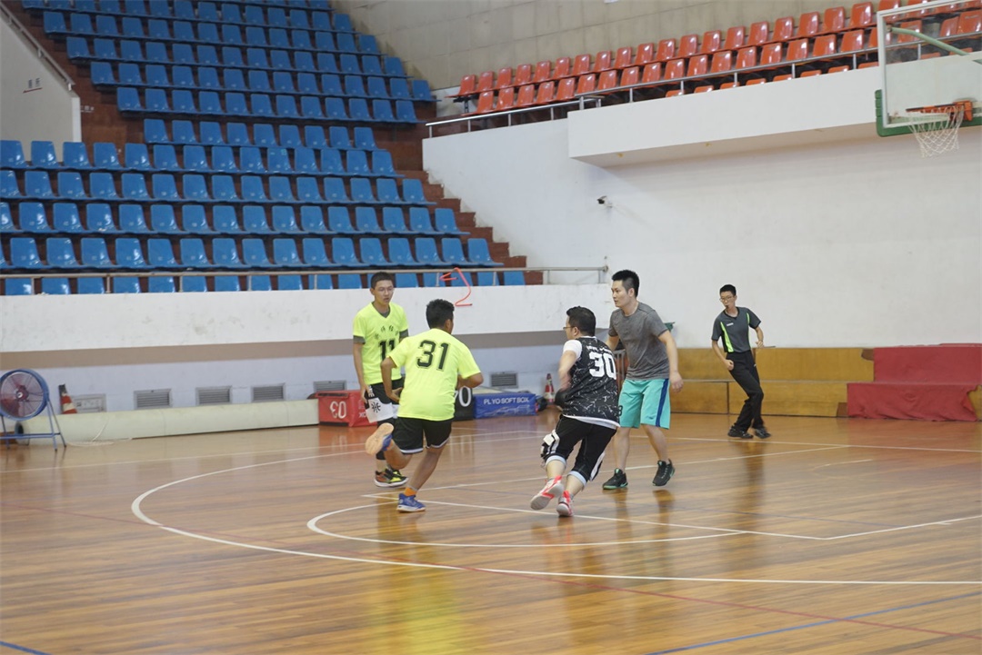 下半场,争夺更加激烈,学生队生猛,教师队稳重,双方展现出强劲的实力,场面激烈。最终教师队与学生队以54:49的比分在愉快的氛围中结束了比赛。