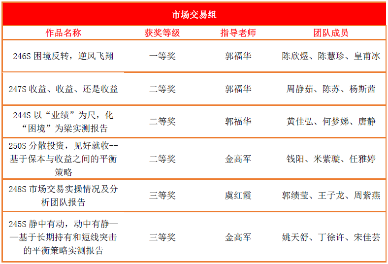 我院4月底启动此次赛事,在7个月左右的时间中经历了文本撰写修改、实测模拟交易、决赛答辩演练等多个环节,最终取得了优异的成绩,参赛学生们的专业基础知识得到了夯实,投资务实、金融创新等能力也在此次大赛的过程中得到有效提升。
