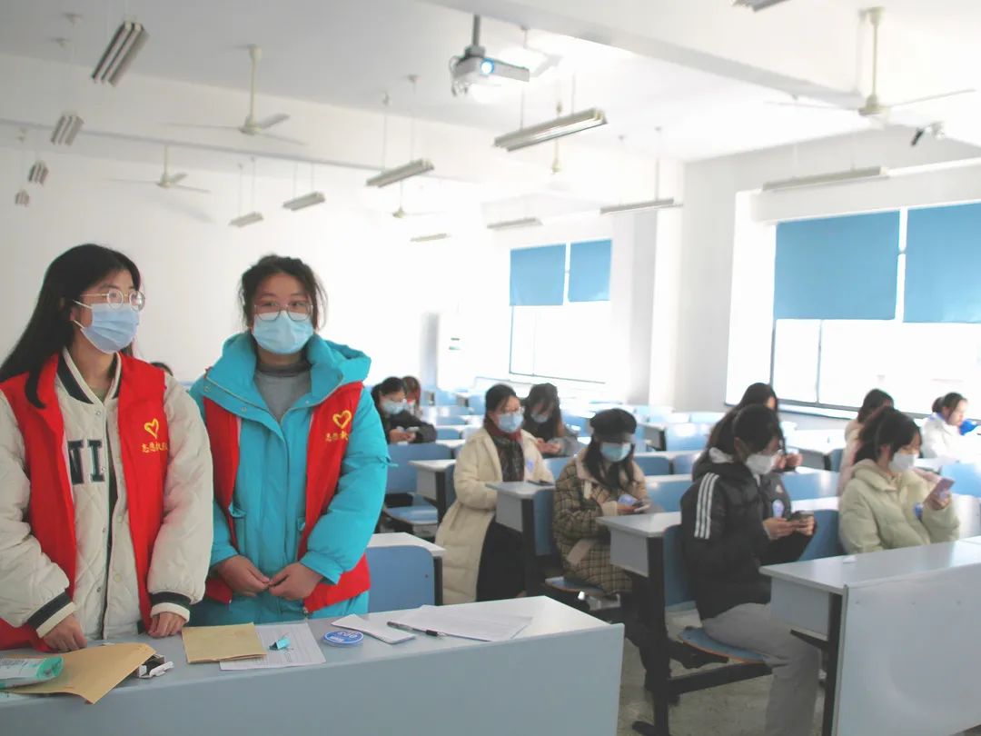 志愿者在工作人员处签到,按照编号顺序进行陈述题目抽选后,有十分钟时间候场准备。每个面试教室的面试团有三位评委老师组成,五位志愿者按编号分为一组,按照组次参加面试。面试分为自我介绍、口语面试、综合考察。