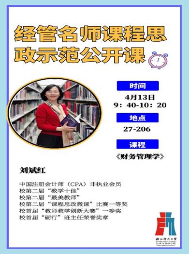 4月13日上午,刘斌红老师公开课开讲。校教学督导主任陈红儿教授,校教学督导陈淼森教授、翁雪香教授、张桃教授、马洪海教授、章小朝教授,教务处卜云成老师等莅临指导。学院近40位教师参加公开课活动,尤其近3年入职的青年博士踊跃参加。