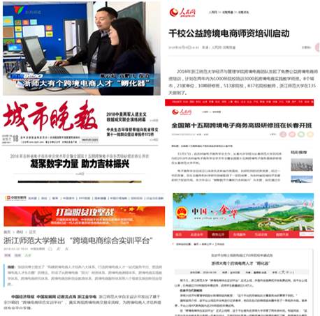 坚持“培养跨境电商精英,助推浙江经贸发展”理念,遵循“专业、行业、企业”融合规律,培养学生的商务运营与数据分析能力等五项素养,学生“创新、创意、创业”热情竞相迸放。依托该人才培养模式,联合80多家机构推出“百城千校”公益师资培训,累计受益教师超过1万名。作为技术提供方支持全国大学生电子商务三创赛江西选拔赛、湖南省大学生电子商务大赛、安徽省大学生国际贸易综合技能大赛等重要赛事。