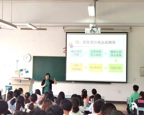 刘斌红老师在课堂上,针对投资项目的可行性分析、现金流测算等知识点进行了精彩的讲授。投资项目可行性分析是投资管理的核心环节,强调经济效益与社会效益并重。结合可持续发展观下的生态文明、建设美丽中国等思政元素,让学生加深对绿色发展和可持续发展理念的理解。项目投资决策指标以现金流量为基础,科技创新是支撑项目现金流的核心因素。突出“创新”对价值创造和企业可持续发展的重要意义,激发学生的创新精神和爱国情怀。
