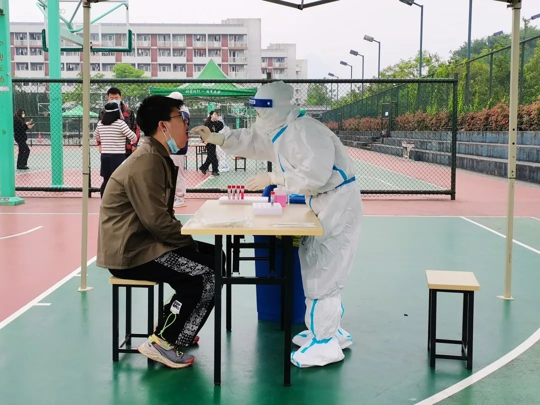 为进一步防范与控制疫情的蔓延,4月16日起,我院全体学生于启明篮球场有效完成四轮核酸检测。