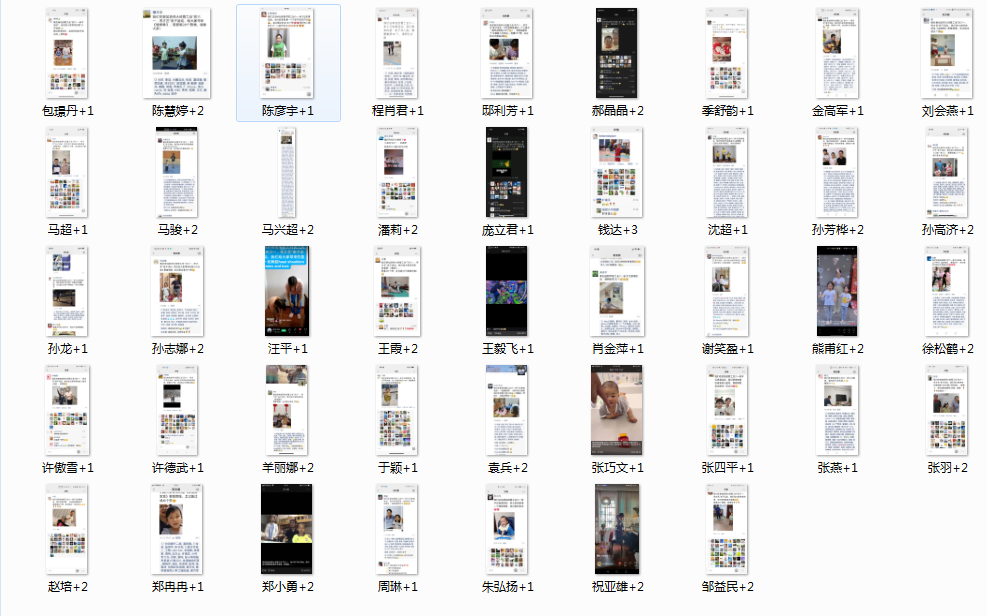 为减少人员聚集,本次活动采取线上形式,参加的家庭需拍摄亲子才艺视频,家长也必须出镜,将视频发送至视频号或朋友圈,集赞20个。这次活动我院共有43个家庭63位小朋友参加。有的是全家齐上阵,有的是上阵父子兵,有的是美女三人行,各种排列组合。