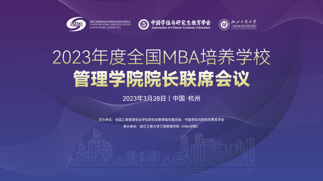 3月28日,2023年度全国MBA培养学校管理学院院长联席会议在杭州之江饭店举行。本次会议由全国工商管理专业学位研究生教育指导委员会和中国学位与研究生教育学会主办,浙江工商大学工商管理学院(MBA学院)承办。经济与管理学院、中非国际商学院院长陈宇峰、MBA教育中心执行主任郑小勇应邀参会。