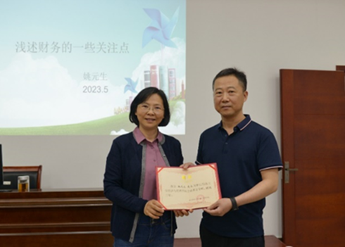 本次企业课堂的重头戏——总监话财务专题讲座。在集团三楼培训教室,刘斌红老师代表学院给姚元生总监颁发了第二期企业课堂导师聘书。