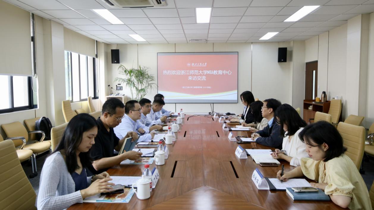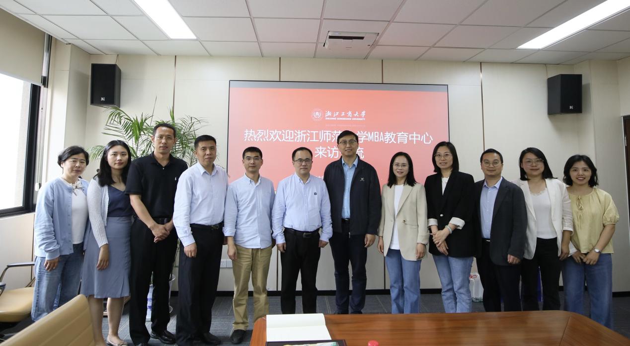4月29日上午,经济与管理学院(中非国际商学院)副院长郑小碧、MBA教育中心主任郑小勇、MBA骨干教师工商管理学科负责人王长峰、管理学系主任庞立君及MBA教育中心工作人员谢海燕和丁思远一行赴浙江工商大学工商管理学院(MBA学院)调研学习。浙江工商大学工商管理学院(MBA学院)学术主任肖迪、办公室主任章慧、招生事务部主管陈敏、学生与校友事务部主管韦杰、培养与学位事务部主管郑春燕及品牌与营销事务部主管孙丹萍及MBA学院各部门负责人出席了调研活动。