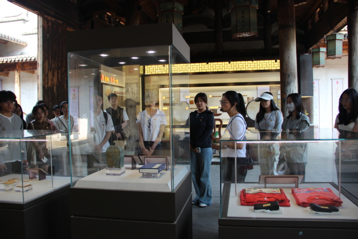 前厅的监察史院以图文上墙等形式,直观展示了监察制度的嬗变历程以及监察机构的责权和历代的监察法规等内容,向同学们展现了我国传统御史监察制度在反腐倡廉中发挥的重要作用以及对当今社会的借鉴意义。到了位于中厅的一清风范厅,里面主要聚焦龚一清的生平事迹、文才武略,以及他的家风家训和监察故事,让人领略监察官龚一清穿越古今的正气与清廉。而后厅的稠江廉院,则将传统与现代相结合,既展示新时代的监察文化与廉洁文化,又致力于打造一个面向社会的廉洁文化教育基地。