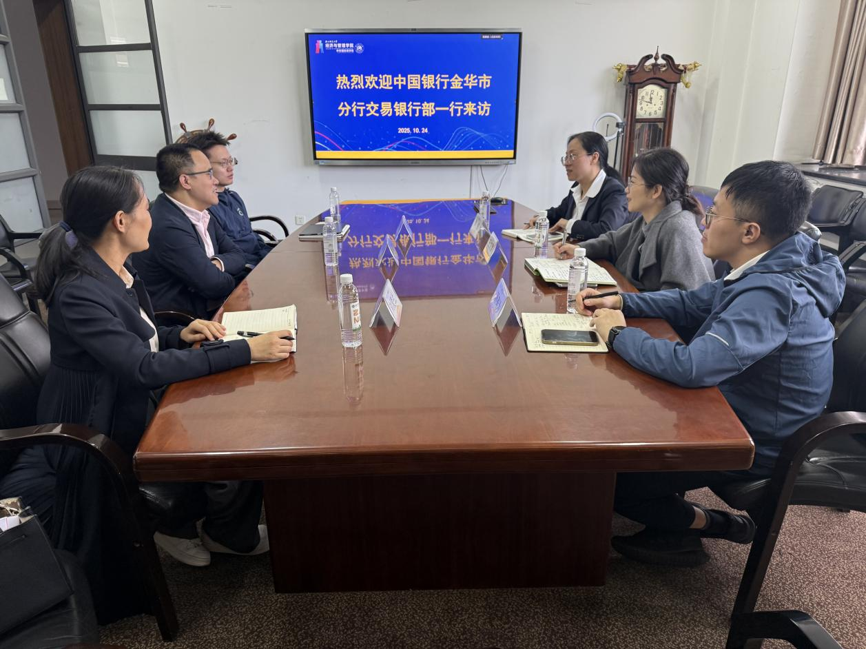 10月24日,中国银行金华市分行交易银行部王文雅主任携汤有为、徐俊副主任来我院交流座谈。我院副院长郑小碧、学术副院长刘爱兰、金融学专业主任胡昊参与座谈。