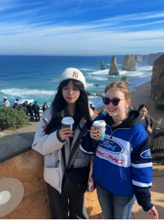 在悉尼大学暑校结业时和老师的合影 在墨尔本大洋路和同学的合影